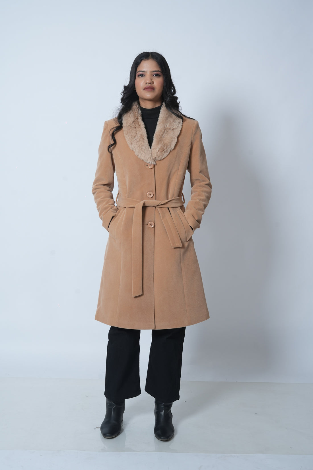 Classic Women’s Long Winter Coat (Beige)