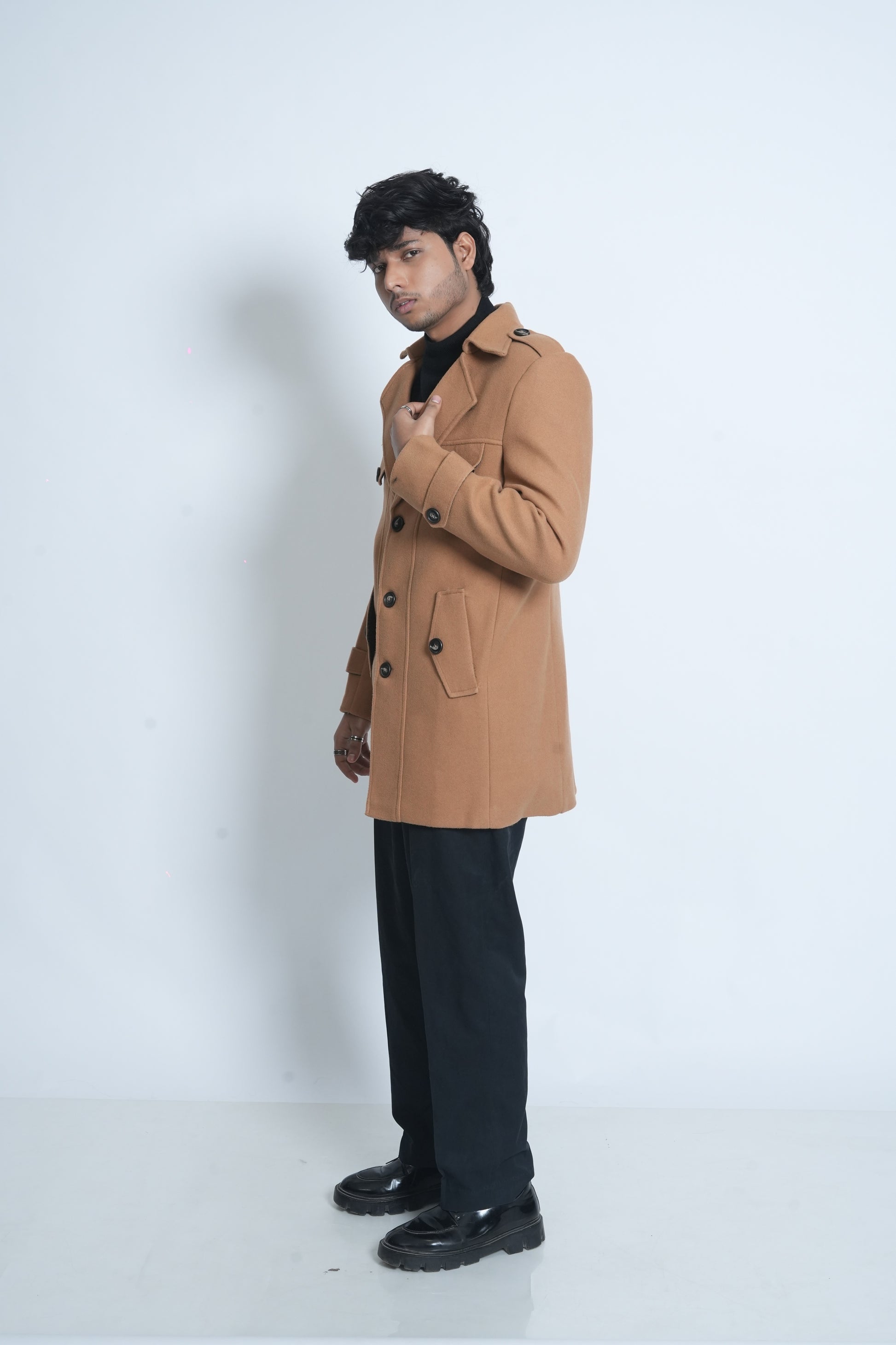 A classic men’s long coat crafted to keep you warm while enhancing your seasonal wardrobe.