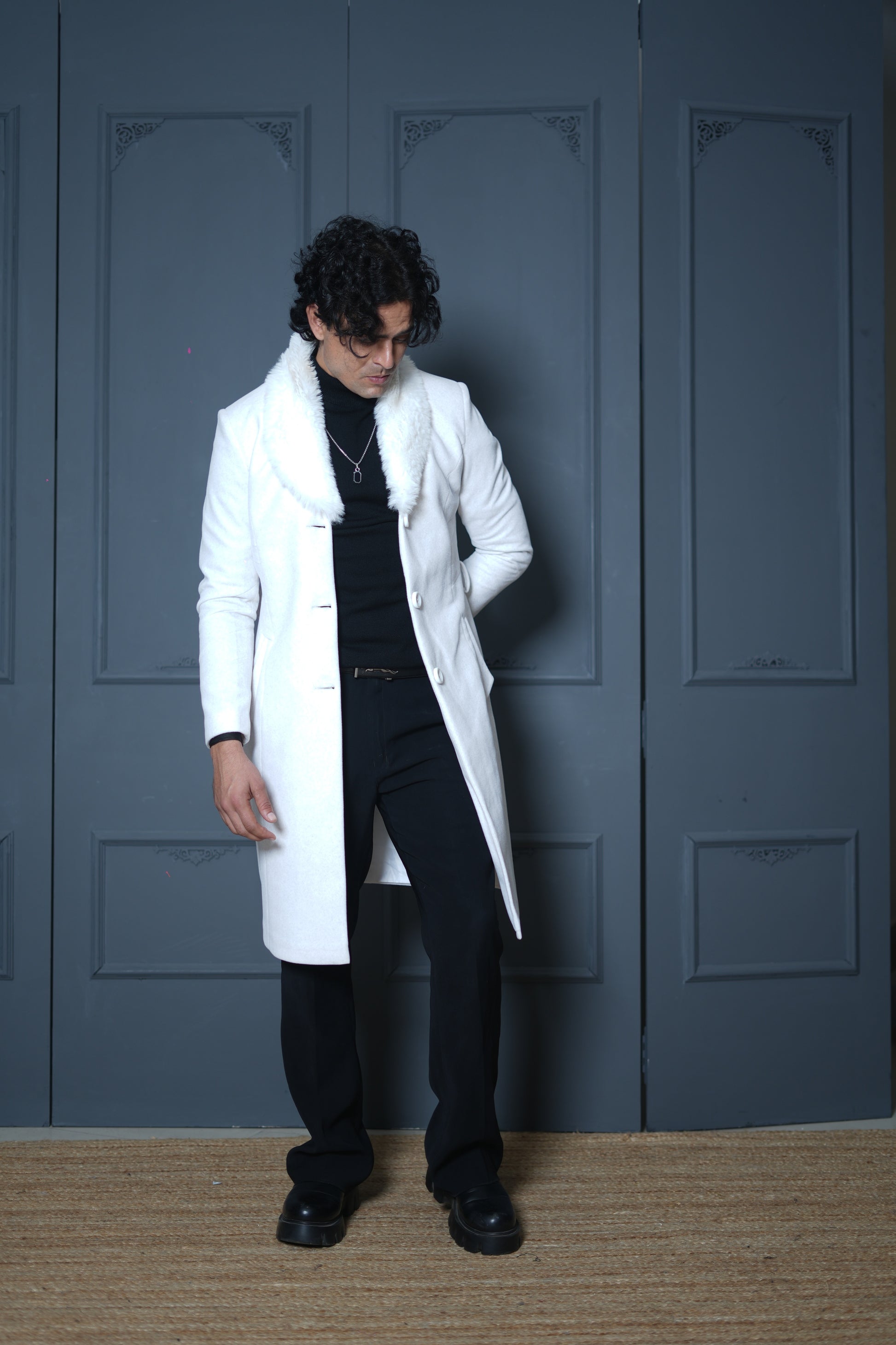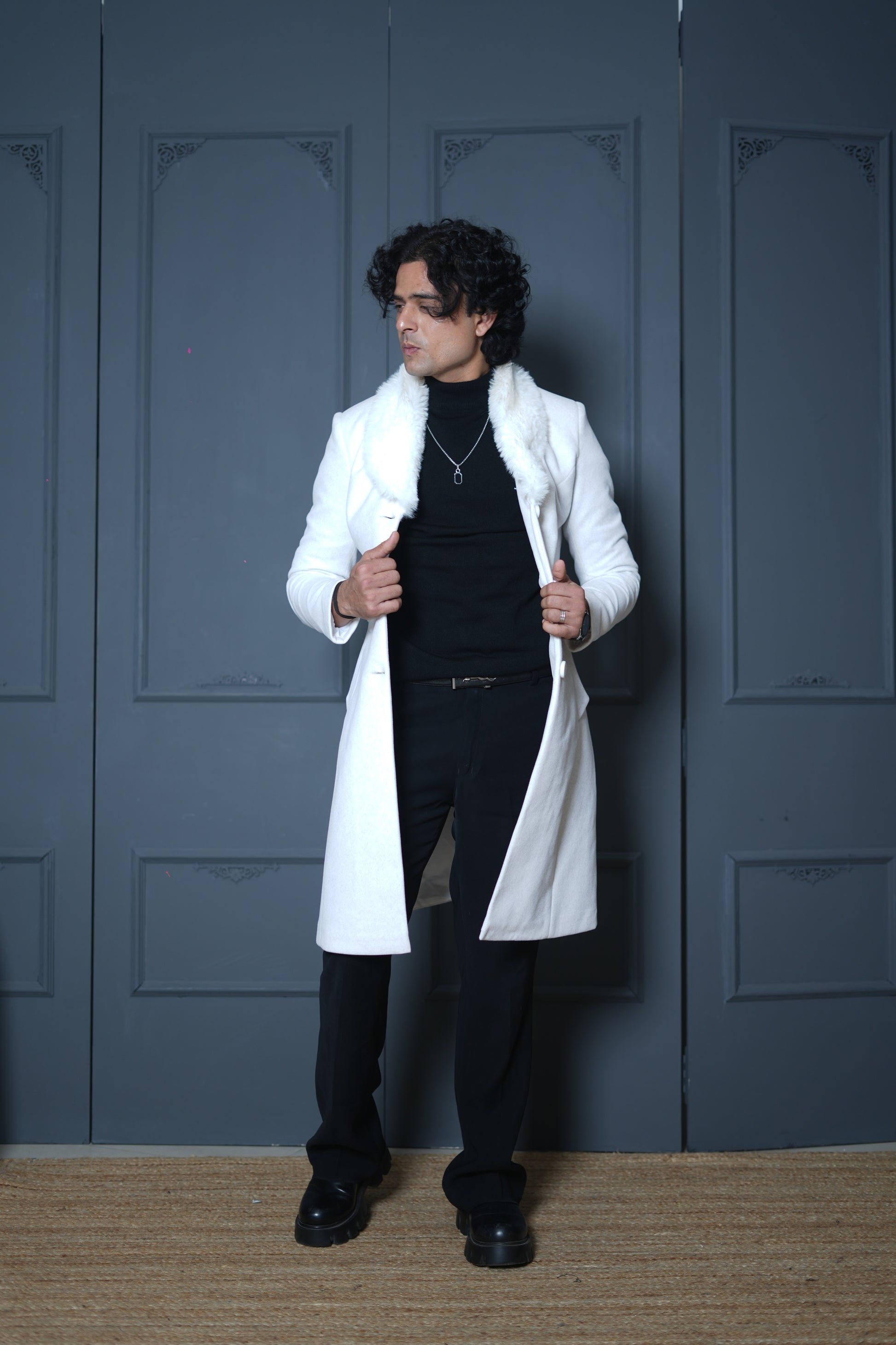 This men’s long coat blends modern style with cozy warmth for effortless winter fashion.