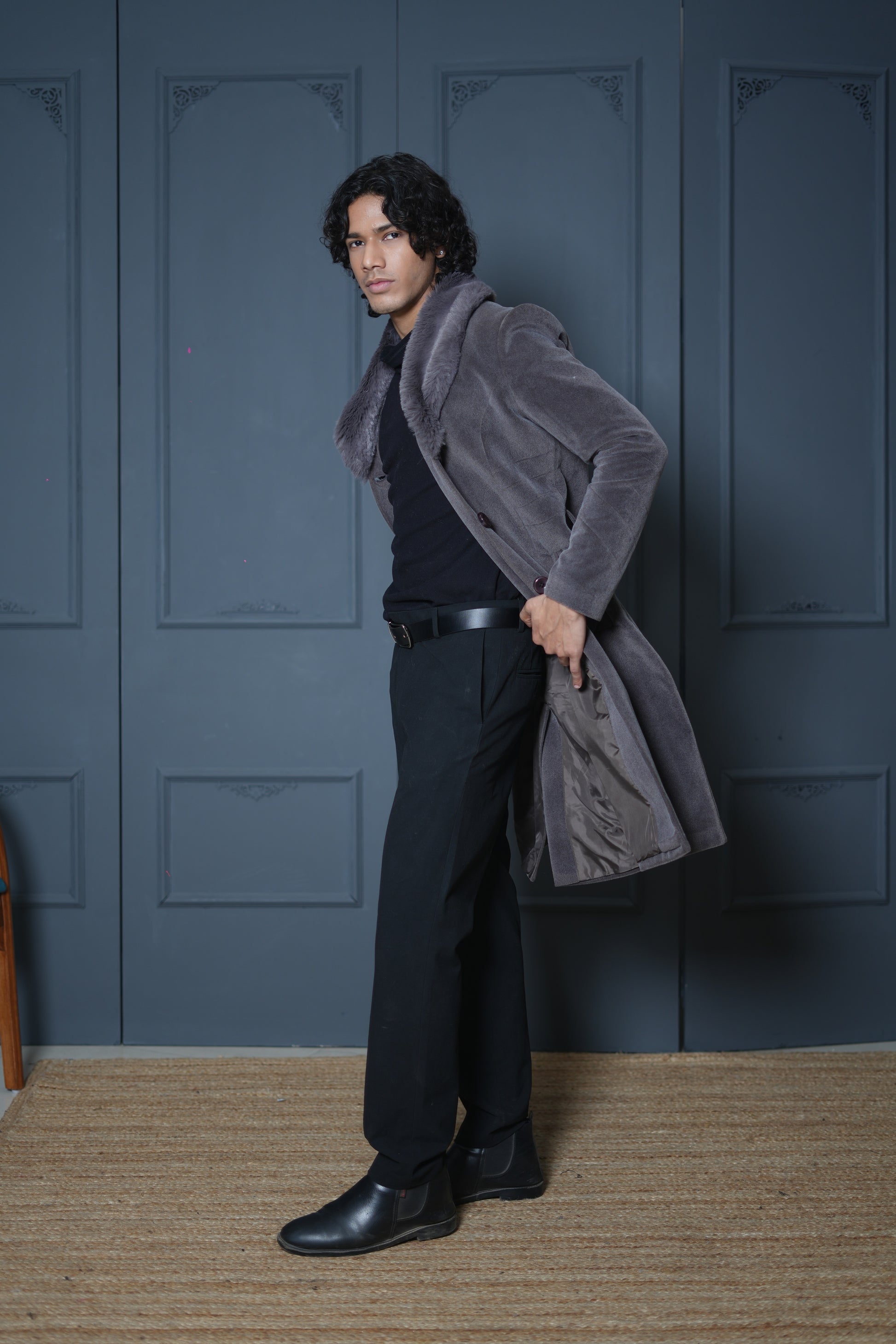 A classic men’s long coat crafted to keep you warm while enhancing your seasonal wardrobe.