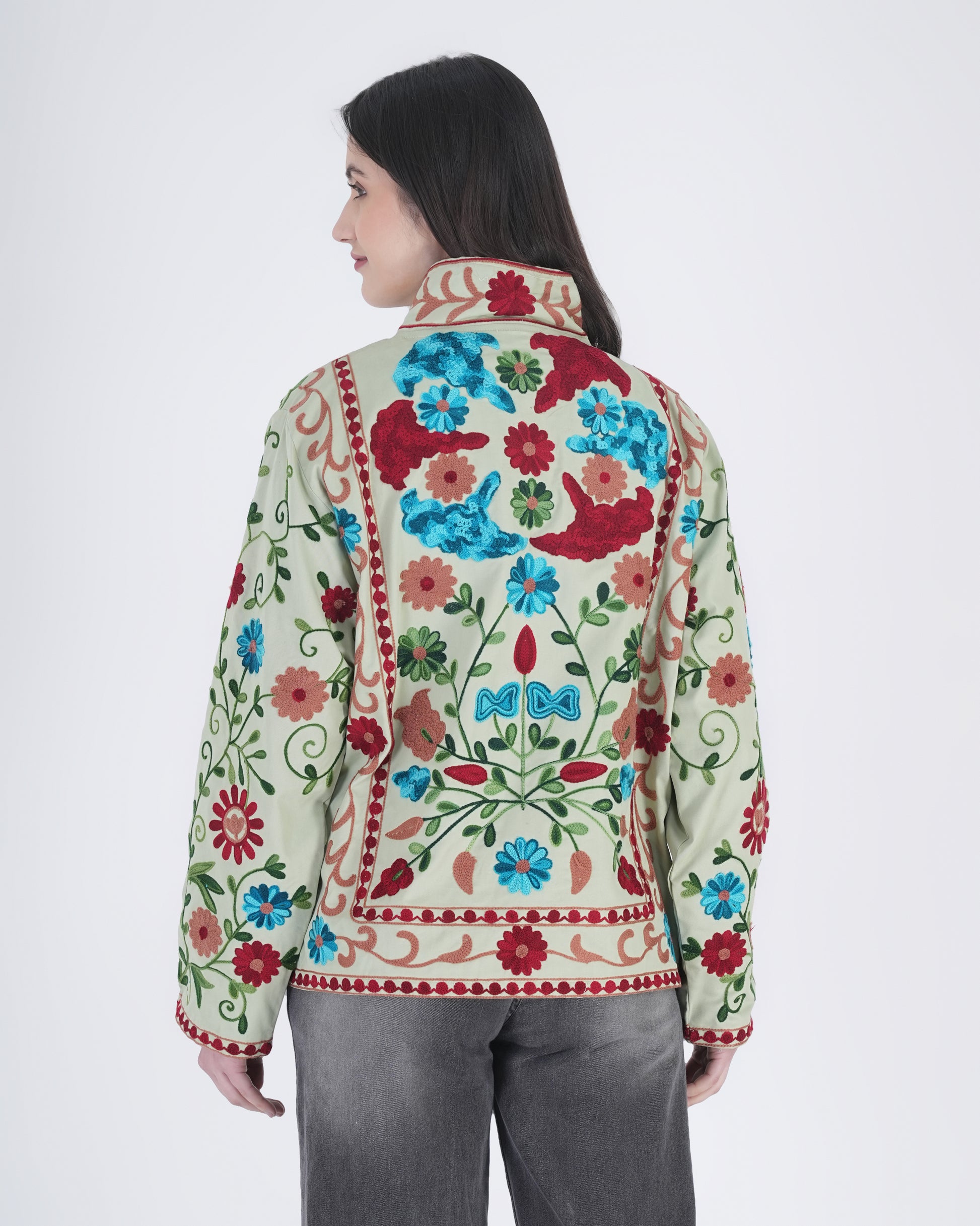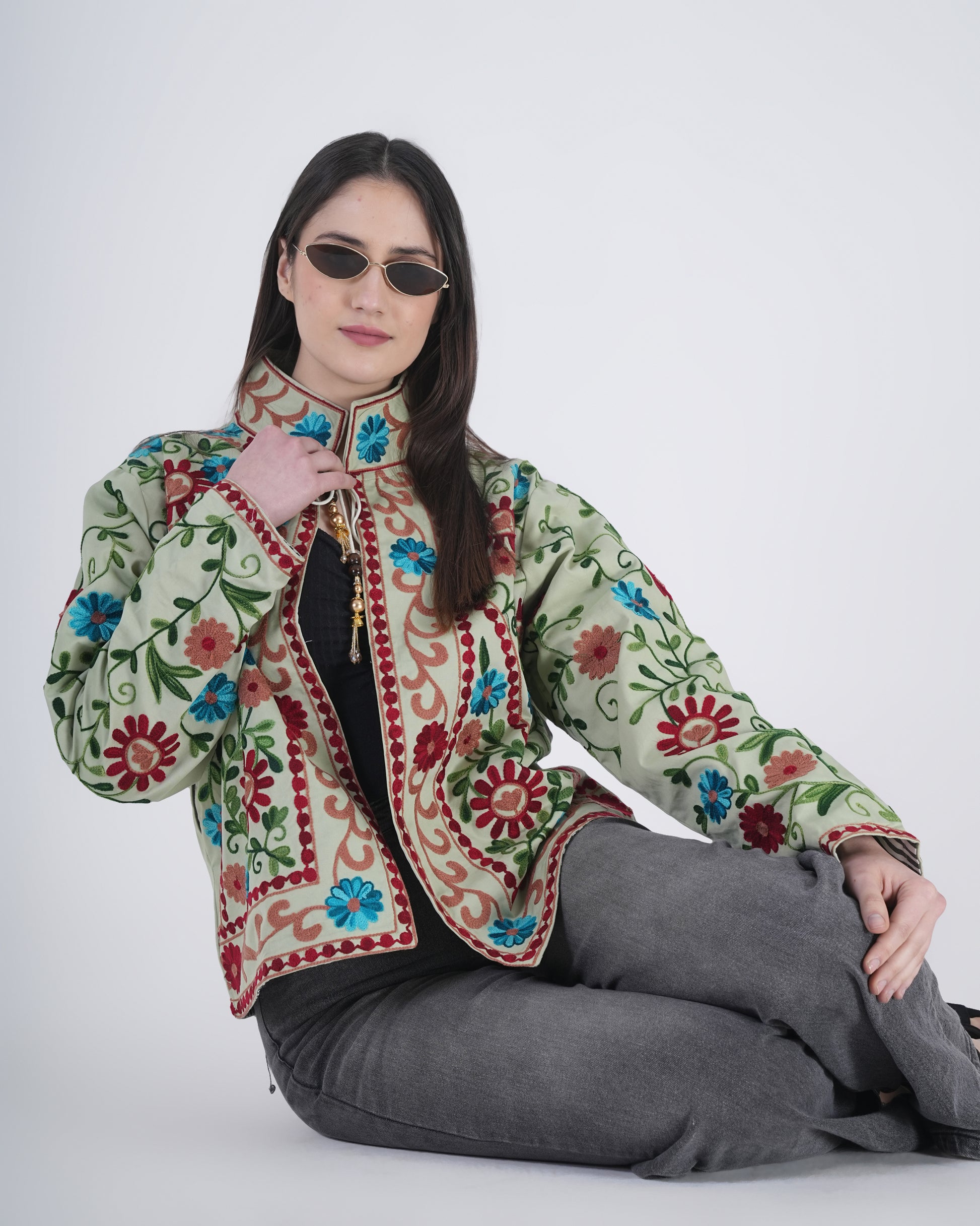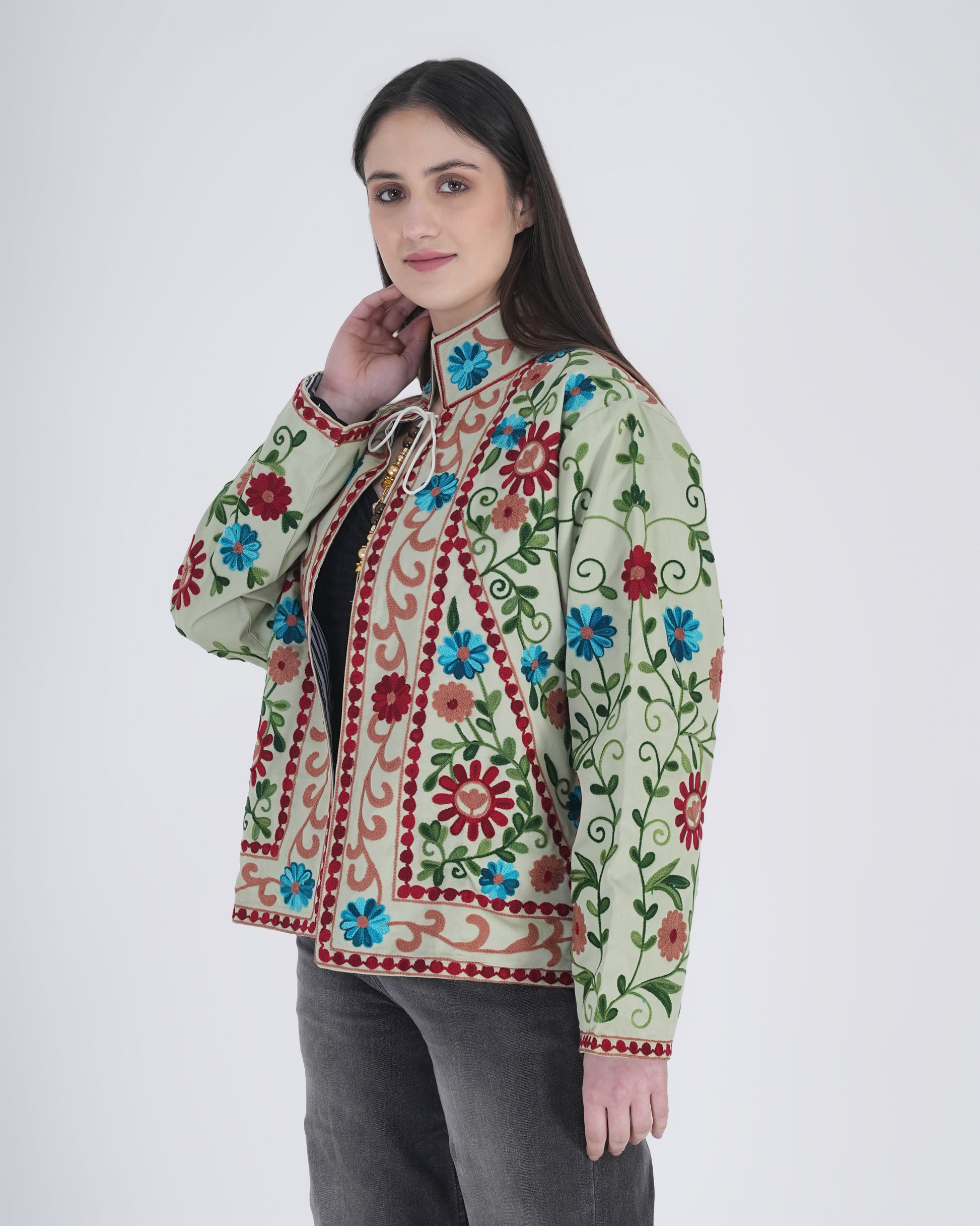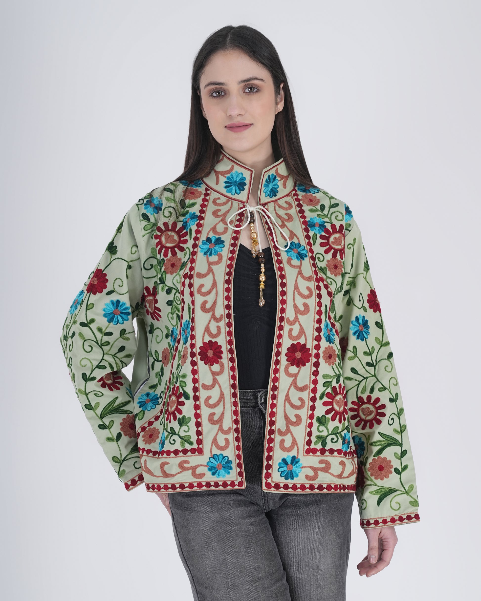 Make a bold style statement with this Women’s Black Floral Embroidered Jacket, designed to elevate any outfit with effortless elegance. Crafted in a timeless black base, the jacket features intricate floral embroidery that adds a touch of femininity and artistry. Its structured yet comfortable fit makes it perfect for layering over casual or dressy looks. Whether styled with jeans, dresses, or co-ord sets, this statement jacket brings refined charm and standout appeal to your wardrobe.